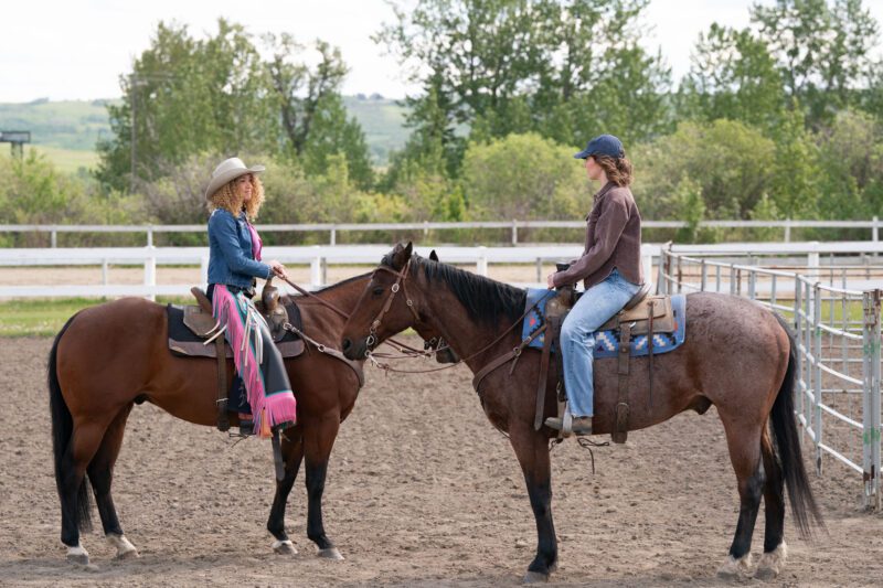 Katie’s journey this episode was surprising and satisfying. It all begins with her first run-in with River outside of Maggie’s. As Katie is posting flyers for her book club, River sizes her up as a bookworm who only reads about horses, not rides them. Katie, feeling misjudged, is eager to prove River wrong and decides to sign up for the Hudson Wilds, the flashy local rodeo flag team.